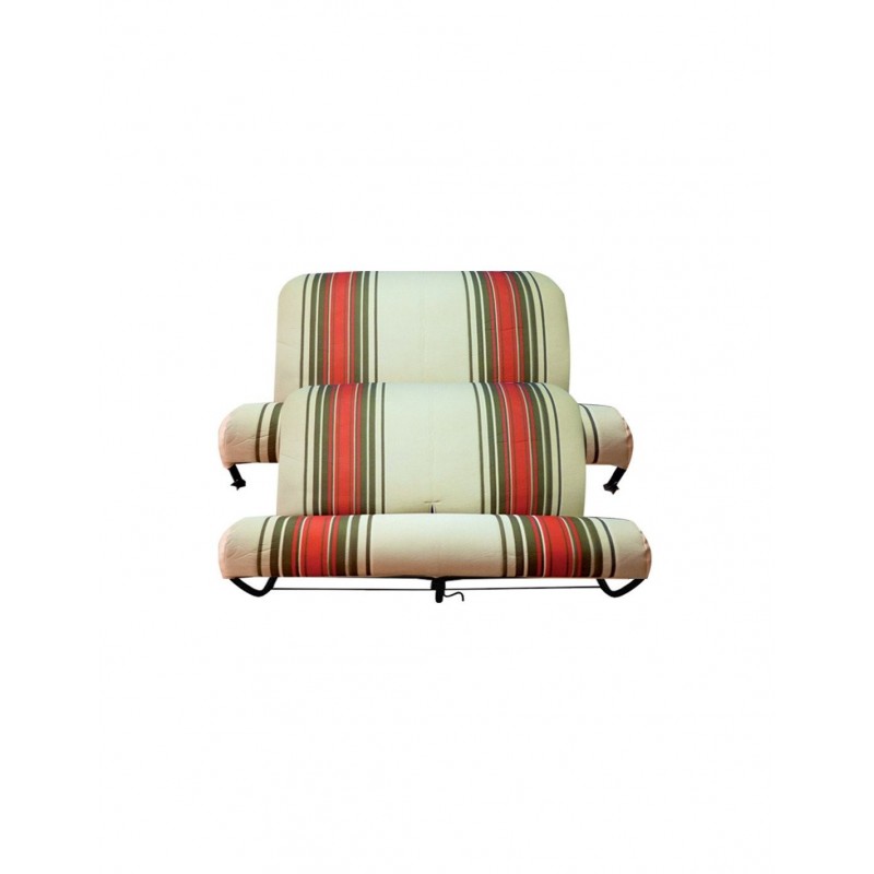 Este kit consta de 1 moldura para el banco delantero y 1 moldura para el banco trasero. Telas vintage de rayas rojas y beige con solapas sintéticas.