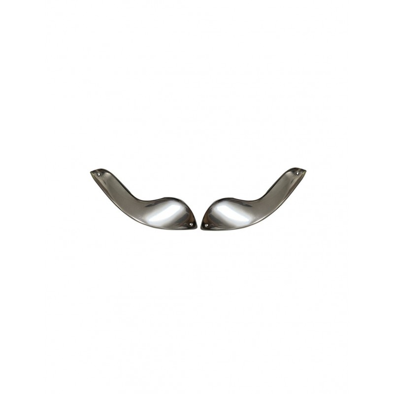 Estos patines de aleta delantera de aluminio se fijan debajo de los intermitentes, en la parte delantera de las aletas del Citroën 2CV sedán. Forman parte del kit completo ref. 1367, pero se ofrecen aquí en pares, para los restauradores que deseen reemplazar sólo esta sección. Fabricados en aluminio estampado, se adaptan fácilmente mediante remaches o tornillos autoperforantes (no incluidos).