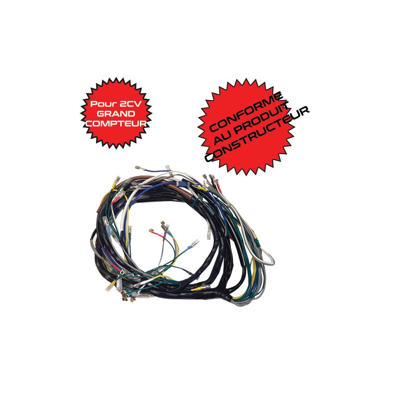Este cableado eléctrico se monta en 2 CV equipados con el contador específico grande, entregados con caja de fusibles.