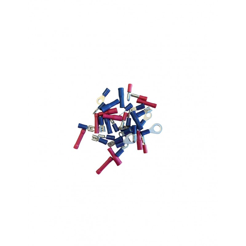 varios tamaños de orejetas en el interior, aislamiento azul o rojo según el tamaño.