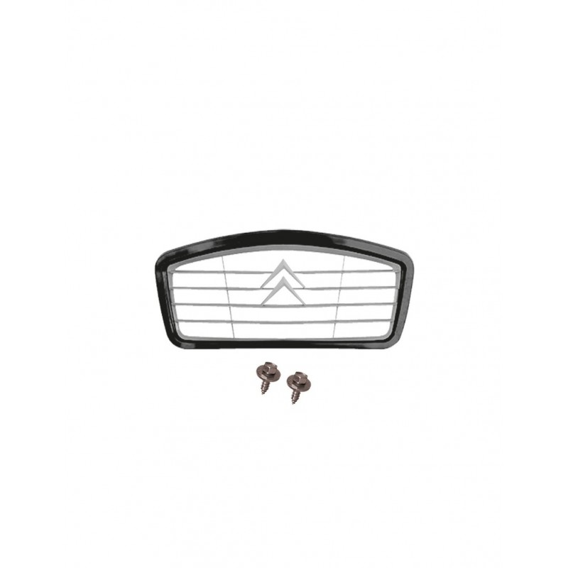 Rejilla con borde negro y centro gris, se entrega con galones grises y tornillos de fijación.