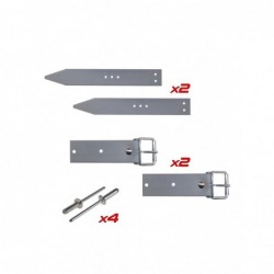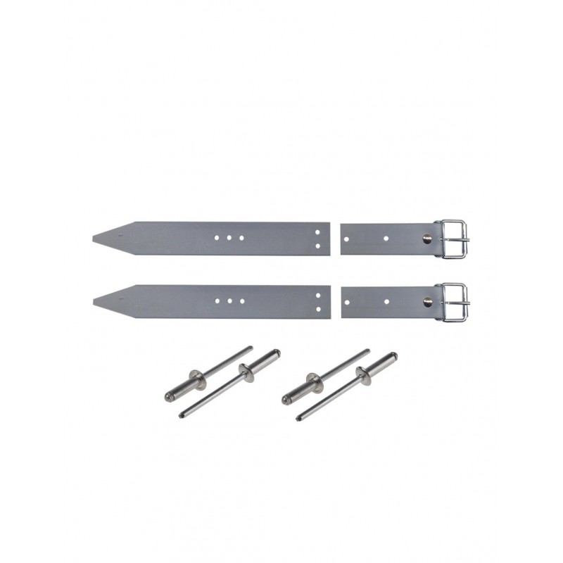 Este kit consta de 2 correas para la Cara Frontal (correa), 2 contracorreas para la Capucha (Hebilla) y 4 remaches de fijación. Se utiliza para sujetar la capota por su parte delantera.
